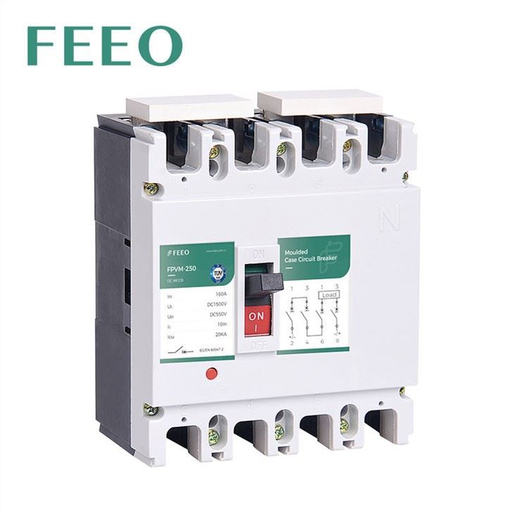 FEEO FPVM series of DC Moulded Case Circuit Breaker(DC MCCB) Industrial Breaker is designed for solar system with bigger current and higher breaking capacity. Rated current of 4Poles contains 125A,250A,400A,630A,800A. Rated voltage of 4Poles is 1000VDC